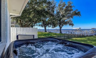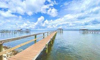 My sister's family and mine met here for an extended weekend. It was the perfect halfway meeting place. We fit 8 people very comfortably, and there was room for more. Perfect for kids including kid dishes and utensils, games, family friendly (HUGE) pool, and an amazing dock. Husband's were pleased with the access to the coffee pot AND Keurig. My husband brought his bay boat and launched it nearby. We also brought our own kayaks (before we found out there were also some on site to rent) and a Inflatable floating dock to enjoy in the bay. Everything about our stay was perfect and we loved being away from the busy beach crowds and traffic. A little plus was easy access to the store for little things we needed or forgot. We can't wait to plan our next visit!