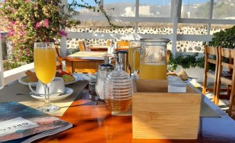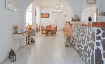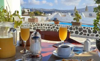 The breakfast was filling enough to give you a good start to the day. The room was clean and spacious with plenty of clothing storage and the bathroom was simple and clean. We had a patio with chairs, TV, hairdryer. It would have been nice to have a kettle. Eileen was very welcoming and polite. We were late arriving - past 1am in the morning but we were still welcomed with enthusiasm. We would book this hotel again. The buses are only EUR2 to Fira and run every half hour. Akrotiri is a very quiet town with one main road, it's a real escape from the busier towns but has its own charm.