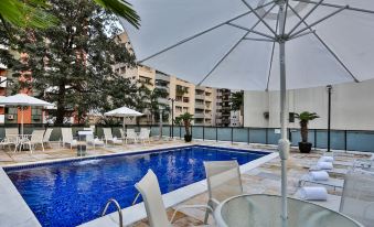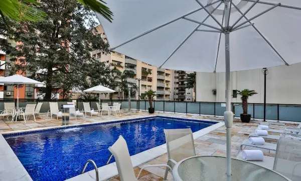 Excellent hotel in a lovely area of São Paulo! Would definitely stay here again. Friendly and helpful front desk staff. Excellent breakfast buffet included. Pool looked clean and inviting. Room was a little older, but clean and well-provisioned. Sofa bed wasn’t in great shape, but fine for a child to sleep on. Stayed here with kids, and felt very comfortable in the neighborhood, lots of grocery stores and restaurants; felt very comfortable walking around after dark.