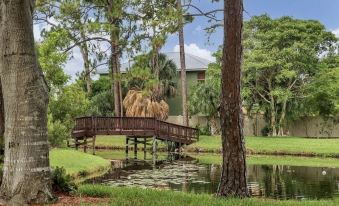 Quiet lush community with large heated pool, hot tub, tennis court, shuffleboard, billiards, and a putting green! Villa has a open set up for you and your guests! Master bedroom has a king size bed, a large walk in closet and en suite bathroom. You’ll find everything you need in our Villa like a full washer/dryer, cable TV and high-speed WiFi!