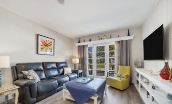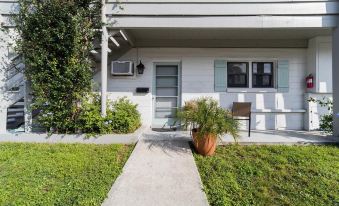 Nice spacious ground floor one bedroom apartment. Just remodeled with new kitchen and bathroom. Front and rear patios. Walk to everywhere in South Side boutique village. 20 restaurants and gourmet grocery store all within 5 minutes walk. Bikes and kayaks available too!