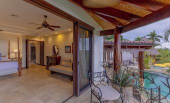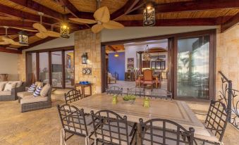 Guests sleep comfortably in 6 en-suite bedrooms, although the home can sleep up to 16 people with the 4 additional pull-out-beds. There are 3 master-suites with ocean views. All bedrooms are individually air-conditioned, with wi-fi throughout the home. Two outdoor showers are also available.