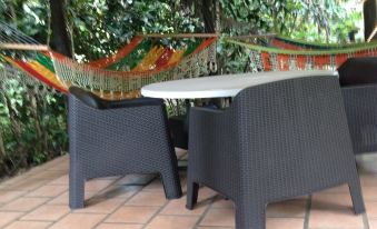 Welcome to Slice Of Paradise, Our 2 story beach bungalow will sleep up to 5 people with 3 beds. There is a king, & queen size beds in the large upstairs bedroom, & a single bed that's separate in the downstairs living room, The bungalow has a fully equipped kitchen complete with a coffee maker and coffee bean grinder, toaster, blender, full size refrigerator, a stove, and all the dishes and cooking utensils you will need for meals. This bungalow has a living room, 1&1/2 bathrooms, A.C, a balcony off the bedroom with a spectacular view of a jungle mountain & large green meadow that's full of tropical birds & other wildlife. There is also a gazebo right in front of the bungalow for your use. The gazebo has hammocks, patio furniture for outside dining, WiFi, & a ceiling fan with lights for using the WiFi in the evening or at night. With a bungalow rental you will have the free use of beach cruiser bicycles, boogie boards, surf boards, beach chairs, large beach towels, & a beach umbrella.