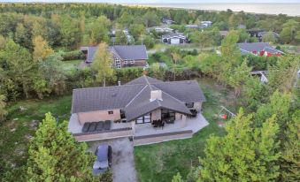 Single-family house, built in 2005. 150 m from the sea. Private: natural state property 1'226 m2, indoor pool (3 x 6 m, 18 m2, depth 140 - 140 cm). Terrace (54 m2), children's playground (swing). In the house: sauna, washing machine, tumble dryer. Parking at the house. Grocery 8 km. The owner does not accept any youth groups. "Ehlin" - 150m from the sea", 3-room house 123 m2. Object suitable for 8 adults + 1 child. Living room with TV, radio, CD-player, hi-fi system and DVD. 1 room with 1 double bed. 1 room with 1 double bed. 1 room with 1 double bed. Kitchen (oven, dishwasher, 4 ceramic glass hob hotplates, microwave, freezer). Shower/WC, hydro massage bath. Upper floor: open gallery with 2 sleeping facilities. Terrace 14 m2, roofed. Facilities: children's high chair, baby cot. Internet (WiFi). Please note: non-smokers only. Maximum 1 pet/ dog allowed. 813-188677