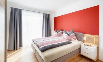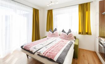 Schladming-Dachstein Summer Card (approx. end of May - end of October) with many benefits included! modern, comfortable 3-family house "Alpenjuwel", 1'132 m a.s.l., built in 2016, surrounded by trees and meadows. In the district of Rohrmoos 6 km from the centre of Schladming, 3 km from the centre of Rohrmoos, in a secluded, elevated position on top of a hill, 1 km from the skiing area, in the countryside. For shared use: large garden 1'300 m2 (not fenced) with lawn. In the house: sauna (extra). Storage room for bicycles, storage room for skis, ski boot dryer. Bread roll service. 6 km long motor access to the grounds (mountain road). In Winter: please take snow chains. Shop 3 km, supermarket 6 km, restaurant 2.5 km, bus stop 250 m, railway station "Schladming" 6 km, outdoor swimming pool 6.5 km, indoor swimming pool 6.5 km, bathing lake "Pichl" 12 km. Golf course (18 hole) 11 km, mountain railway 1 km, ski lift 1 km, slopes 1 km, ski bus stop 300 m. Well-known ski regions can easily be reached: Planai 6 km, Hochwurzen 1 km. Please note: the owner lives in the same residence. Panoramic outdoor sauna for a fee (Euro 20,-/hour). "Rubin", 2-room apartment 50 m2 on 1st floor. Bright, modern and stylish furnishings: living/sleeping room with 1 double sofabed, dining table, dining nook and cable TV. Exit to the balcony. 1 room with 1 double bed. Exit to the balcony. Open kitchen (oven, dishwasher, 4 ceramic glass hob hotplates, toaster, kettle, microwave, freezer, electric coffee machine). Shower/WC. Underfloor heating. Balcony. Balcony furniture. Marvellous panoramic view of the mountains, the valley and Schladming. Facilities: children's high chair, baby cot. Internet (WiFi, free). Parking (1 car) at the house. Please note: non-smoking house. Smoke alarm.