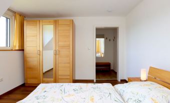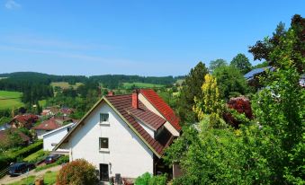 Beautiful 2-family house, 2 storeys, detached. Above Schonach 300 m from the centre of Schonach, 4 km from the centre of Triberg, in a quiet, sunny position in the residential district. Parking at the house. Grocery 300 m, supermarket 1.5 km, restaurant, bakery 300 m, bicycle rental 500 m, 10 minute walk to the centre, bus stop "Obertal, Schonach" 600 m, railway station "Triberg" 4 km, outdoor swimming pool 500 m, lake Blindensee (Hochmoor) 1 km. Minigolf, ski lift 500 m, cross country ski track 300 m. Nearby attractions: Triberger Wasserfälle 6 km, Freiburg 50 km, Heimatmuseum Triberg 6 km. Well-known ski regions can easily be reached: Feldberg 50 km. Well-known lakes can easily be reached: Titisee 50 km. Hiking paths: Schwarzwald 10 m. "Blackforest Birdnest", 2-room apartment 65 m2, on the top floor. Bright, modern and cosy furnishings: large living room with cable TV (flat screen). Exit to the balcony. 1 room with 1 double bed (2 x 90 cm, length 200 cm). Kitchen (oven, dishwasher, 4 ceramic glass hob hotplates, toaster, kettle, electric coffee machine) with dining table. Exit to the balcony. Bath/WC. Heating. Balcony. Balcony furniture. Facilities: hair dryer. Internet (WiFi, free). Parking (1 car) at the house. Please note: non-smokers only. Smoke alarm.