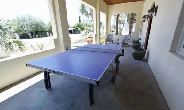 The beautiful, safe, and very family-friendly New Urbanist town of Seaside is just a short stroll away (about 250 feet). There you'll find numerous unique restaurants, boutiques, art galleries, and a wonderful bookstore and record shop. Throughout the year there are free outdoor concerts, movies, and special events. There is a 30-mile long gulf side biking and walking path coursing directly in front of the house. Play tennis at the nearby Watercolor tennis club (fee), or take a short drive to golf. Kids (and adults!) love the outdoor table tennis and the palm-tree shaded Bocce ball court. Relax in the private pool or gather in the evening around the stacked stone fireplace in the courtyard. Of course, most importantly, the gorgeous beach and Gulf of America are only steps away!