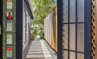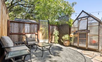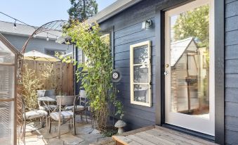 The studio is designed with guest needs in mind. Extra comfortable space filled with high end furnishings, comfy queen bed, private sun drenched yard and private entry.