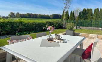 In addition to your booked holiday home, there is a terrace with a garden and a view of the greenery as well as a second large terrace.