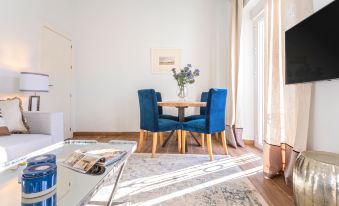 The apartment includes a cozy, well-designed living room that invites relaxation, along with a spacious, fully equipped separate kitchen offering everything you need for a comfortable stay.