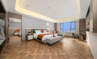 一家四口住的,房間在7樓,很安靜,全屋智能包括馬桶窗簾,關鍵是套間之間有門而且都有獨立的衞生間,非常適合一家人入住,太棒了,整個套間都很大,問前台要了小童拖鞋也很快就由機器人送上來了,晚上在不同商家點了三次外賣都是機器人送到房間門口簡直太便利了,沒有預料到的好啊,推薦入住!