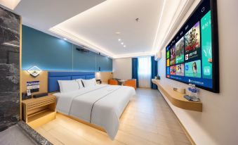 一進房間,清新的藍白配色讓人眼前一亮,簡約又時尚。房間打掃得一塵不染,佈置也很温馨。床品柔軟得恰到好處,躺上去彷彿被輕柔擁抱,睡了個超香甜的好覺。最驚喜的是那超大的投影幕布,往床上一躺就能享受大屏觀影,音質更是出色,彷彿把私人影院搬進了房間,氛圍感直接拉滿!