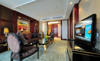 Situated in the downtown area, the Zhongjin Haoting Business Club Hotel Shaoxing (Shaoxing Zhongjin Haoting Da Jiudian) is a short drive from Shaoxing Railway Station.Rooms in this Shaoxing hotel are equipped with standard amenities and include IDD telephones, mini-bars and in-room safes. Wi-Fi is available in public areas of the hotel.This hotel also features a function hall and meeting rooms suitable for business activities.Dining outlets include Chinese and Western restaurants, a coffee shop, tea room and a lobby bar.This hotel also offers a selection of recreational options including billiards facilities, a fitness center, sauna and massage.