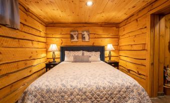 Bedroom #2 (Main Floor): Offering a queen bed and adorned with rustic log walls, this bedroom exudes warmth and comfort.