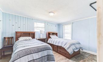 Enjoy walking distance to the private lake beach at Lake Texoma with this cozy 2-bedroom house in charming Pottsboro, complete with AC/Heater and WiFi, kitchen, and refrigerator.