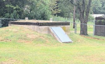 The secure property features a tornado shelter and a spacious dog-run house.