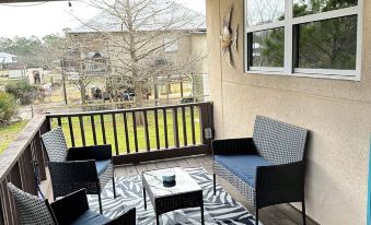 5 minute drive to the interstate. About one hour from New Orleans and Mobile.About pets:Pets allowed: dogs (limit 2 total).About checkOut:Check out before 11:00 AM.About children:Children allowed: ages 0-17.About customRules:Please respect check out time as we need to get the place ready for the next guest..Please return kayaks and paddles to their racks when finished and put umbrellas down after use.,Please pick up after your pets in the yard. 💩.About checkIn:Check in after 4:00 PM.About smoking:Smoking allowed: in designated areas.About minBookingAge:Minimum age to rent: 21.About events:No events allowed.