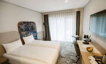 We stayed at Mercure Sibiu Arsenal for 2 nights in August 2025 and absolutely loved it! The hotel is in a great location — next to Sub Arini Park and a short walk from the old town. The staff were super friendly and professional, everything was spotless, and the overall atmosphere was cozy and welcoming. We had a spacious room with a lovely terrace and one of the most comfortable beds ever! Great breakfast, excellent facilities, and the Winestone restaurant was a real treat — delicious food and perfect service. Thank you, Mercure Sibiu Arsenal team, for a fantastic stay. We’d love to come back!