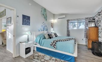 This unique place has a style all its own. Beachfront handcrafted family-friendly Home sleeps 5 & with a little bit of a walk to the beach. There is an all-terrain wagon to carry your items, Outdoor Games, a fire pit w/wood, a hammock, patio furniture, a large charcoal grill picnic table for six, and a small handcrafted kiddy picnic table. Complete Kitchen over 32 spices, air fryer rice & 2-slow cooker Bake & Cookware a full kitchen to cook your meals. COME, Relax at the Cozy Beach Front Home! Enjoy! This Home has Very high ceilings, fans, and skylights well decorated in 2 rooms. You have an excellent unobstructed view of the lake. Lots of inclusions for kids. This house is cooled and heated by AirPro Mini-splits for your comfort.