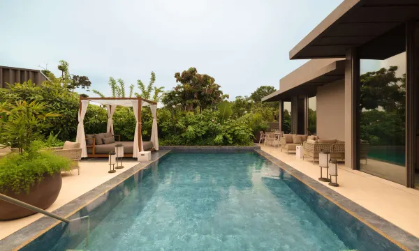 An oasis immersed in wellbeing and nature, Raffles Sentosa Singapore is the first all-villa resort in Singapore. Located on a hilltop, it features 62 pool villas surrounded by lush gardens. For guests travelling with family or close friends, interconnecting villas offer the perfect balance of togetherness and privacy. Facilities include five restaurants and bars, swimming pool, Raffles Sentosa Spa, fitness centre, and two ballrooms. The upper level ballroom has a terrace that overlooks South China Sea.