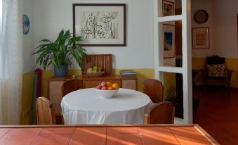 This small apartment, the ground floor of a charming villa in Galamares, communicates directly to the garden and includes a large living room with a 4-person dining area and a kitchenette, two comfortable and furnished bedrooms, a double bedroom and a another with two beds and a spacious bathroom.