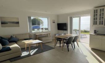 House, built in 2018. 10 m from the sea. For shared use: well-kept garden. Grocery 4 km. The owner does not accept any youth groups. "Volmar" - 10m from the sea", 2-room apartment 75 m2. Object suitable for 4 adults. Living room with TV. 1 room with 1 double bed. 1 room with 1 double sofabed. Kitchen (oven, dishwasher, 4 induction hot plates, microwave, freezer). Shower/WC. Barbecue. View of the sea. Facilities: washing machine, children's high chair, baby cot. Internet (WiFi). Parking at the house. Please note: non-smokers only. Bookings accepted for holiday purposes only. 479-92907