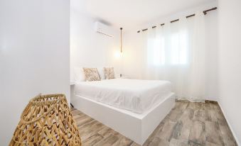 The apartment features elegant, cozy interiors designed with refined simplicity, natural tones, and quality furnishings. Large windows fill the space with light and frame serene views of the Aegean Sea. Whether you're enjoying your morning coffee on the terrace or unwinding in the living area, every corner promotes a deep sense of calm.
