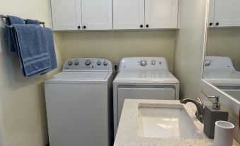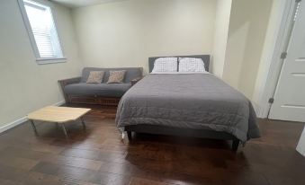 (1 queen bed and 1 futon bed) with walk-in closet. Full size kitchen and bathroom. Washer and dryer inside unit.