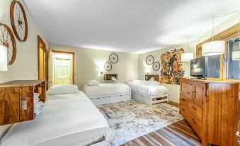 This house is somehow right across from the slopes yet feels totally private. It really could not be a better location! The back yard has a fire pit and hot tub overlooking a pretty forest, while the front sits just far enough from the road to feel tucked away but has ample parking with quick access to the main road. The living room area boasts one of the largest sofas and TVs I’ve ever seen, so our group of eight was able to hang out, watch movies when it rained, or play music from the tv apps during cocktail hour. The owner could not have been nicer and answered any question I had right away. There are plenty of smaller rooms with seating so everyone could steal away if they wanted to make a private phone call or do some work. We didn’t have kids with us but if we did, they would have had a great time on the lower level which has a king suite plus a room with four twins and a mini living room with a kitchen. All in all, a great VRBO!