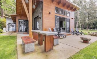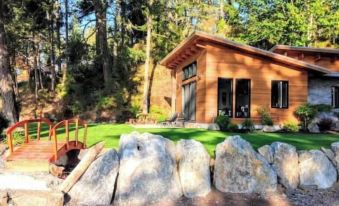 Gated, beautiful ocean front, modern home. Very unique semi-private getaway. A great west coast living experience; close to world renowned West Coast Trail, plus numerous other hiking trails in lush rainforests and many nearby scenic beaches. Sooke is known for excellent salmon and halibut fishing and whale watching. Kayaks and canoe rentals are nearby, plus several golf courses, including famous Bear Mountain courses in Langford, approximately 30 minutes away. Lovely city of Victoria is a 40 minute drive away. Choose to stay in...enjoy indoor fireplace or outdoor patio, while gazing at Olympic Mountains across the ocean view from the house and wildlife crossing the lawn surrounding the house. If there is a chef in you, the house is very well equipped.
