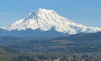 French-inspired elegance in this cozy basement apartment (separate entry)w/breathtaking views of Mt. Rainier! French decor throughout creates a serene retreat. King bed with memory foam mattress that isn't too firm nor too soft-it's just right.