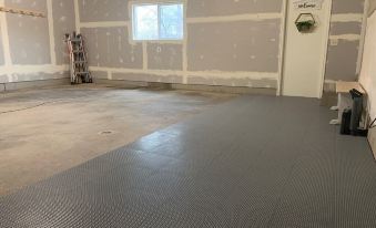 The garage is equipped with drainage floor tiles, a 10-pair ski rack, a bench and a boot warmer.