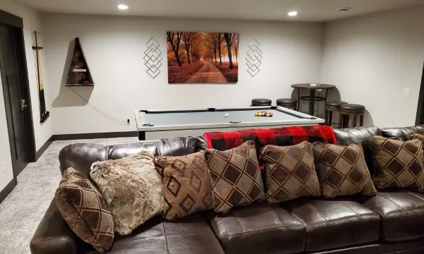 A beautiful house well set up for a large group. Comfortable common areas but plenty of room for privacy also. We had so much fun playing pool and pinball after a long day riding. The basement has a huge comfy couch, pool table, sink, fridge and microwave. It would be a perfect hangout for teens while the adults visit on the main floor. The beds were comfortable with plenty of pillows.