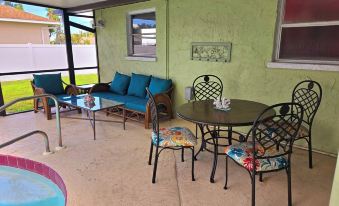 Welcome to the Queen's Flamingo. This home has everything you need for a relaxing vacation. The home has a heated salter water pool and spa combination, outdoor covered roof dining, fully fenced in yard with privacy fencing, and a Florida room. The split floor plan with the living room in the middle makes it perfect for guests whom may be visiting. You can walk to Shamrock Park and the beaches are a short drive away, or a longer bike ride for those looking for a little more of an adventure.