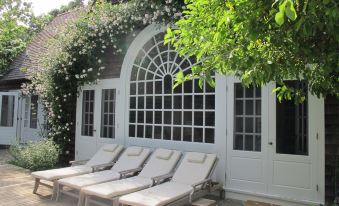 Adorable 2 story family home in the heart of Sagaponack. 3 Bedroom main house, all with en suite bathrooms, plus an additional bathroom off the kitchen with a separate guesthouse that includes a queen size pullout, a wet bar, office and full bathroom. **WINTER MONTHS POOL HOUSE NOT AVAILABLE** Upon entry is the expansive and light living room that looks straight out to the picturesque pool and back yard. The living room features a comfortable couch, leather club chairs plus additional seating as well as a huge wood burning fireplace. The main floor includes the living room, master suite, kitchen and extra bathroom/laundry. There are 2 additional bedrooms upstairs on either side of the living room with separate staircases and both en suite bathroom. The master suite is fit with a king size bed, closet space and French doors that lead out to the deck and pool. The guest suite above the master is set up to perfectly suit your little ones, complete with 2 twin beds (a Baby Bjorn pack’n’play or a full size crib if needed), a nautical themed bathroom and a wall of vintage children’s books. The 2nd private guest room is located above the kitchen accessed by its own private staircase and also includes a full en suite bathroom. There is an additional bedroom in the pool house (if needed) that is perfectly set up for guests with a queen size pull out couch, full bath and wet bar/kitchen. There is a Samsung Flat Screen television in the living room, an additional flat screen television in the kitchen and another flat screen television in the pool house, all with full premium channel cable- living room also has Apple TV. WiFi throughout, as well as a Sonos Music System that plays thru built-in speakers in every room in the home. The Kitchen is complete with luxury appliances and a perfect breakfast nook with French doors that lead to the outdoor dining table and BBQ nestled under an apple tree. The pool and backyard are completely enclosed with a high fence and is private and relaxing. The yard is perfectly manicured, yet you are surrounded by trees and a forest feel that create a unique and cozy quality. The backyard also features teak lounge chairs, a dining table, an outdoor lounge set as well as an enclosed outdoor shower. There is also an expansive front lawn and gorgeous curving pebble driveway. The home is about 2500 sq ft and sits on an acre of beautiful land. The Long Island Railroad runs along the back of the property and the home is just across from the famous Poxabogue pond and has gorgeous walking trails around the Poxabogue County Park – a preserve full of wildlife and stunning views. Walk to Loaves & Fishes for coffee and the best scones in the Hamptons as well as a variety of the tastiest prepared foods you’ll find around. A bit further is a farm stand that sells a huge variety of local produce. Also walking distance is the stunning Wolfer Winery. About a 5 min drive the beach, as well as to adorable Bridgehampton or to Sag Harbor, both offer top restaurants and shopping. This home is truly close to everything, but so comfortable and inviting - you may not want to go anywhere!About pets:Pets allowed: limit 1 total.About checkOut:Check out before 10:00 AM.About children:Children allowed: ages 0-17.About checkIn:Check in after 2:00 PM.About smoking:Smoking allowed: in designated areas.Outdoors ONLY.About minBookingAge:Minimum age to rent: 21.About events:No events allowed.