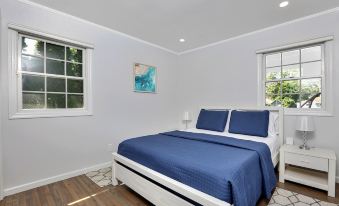 4 bedrooms: 2 single beds 2 queen beds and 1 king bed