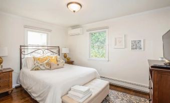 The Master Suite is very bright and private occupying the upper floor with walk in closet and a deck that leads outside to expansive bay and ocean views. On the main floor there is a double living room with a fireplace, dining area, open kitchen that is fully equipped for all your cooking needs, and 3 bedrooms and 2 bathrooms. One bedroom has a bath ensuite and the 2 smaller bedrooms share a bathroom. Each room has its own AC and heating unit. Downstairs you will find a comfortable den that can be used for lounging and the downstairs has its own full bathroom. With close proximity to the bay and access just down the road, bring your kayak or paddle board and enjoy all that the Hamptons has to offer.About pets:No pets allowed.About checkOut:Check out before 11:00 AM.About children:Children allowed: ages 0-17.About checkIn:Check in after 4:00 PM.About smoking:Smoking is not permitted.About minBookingAge:Minimum age to rent: 25.About events:No events allowed.