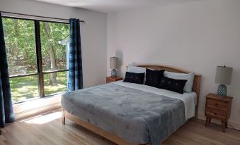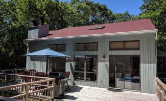 New to the rental market, this beautiful house with lots of privacy on 2.3 acres with a large, heated saltwater pool, great deck and hot tub. The house offers three bedrooms, plus the possibility to accommodate two additional guests on a futon on the gallery (open to the living room). On the ground floor is a master bedroom with an ensuite bathroom whereas the upstairs bedrooms share one bathroom. The living room opens up to a large deck with BBQ in a very private, serene setting surrounded by nature.