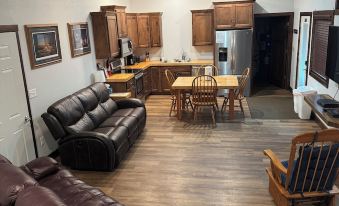River front property with plenty of parking! The copper lodge is located at 41059 main rd Springfield, SD 57062. The lodge consists of 900 sq ft living quarters with 1 king and 6- twin xl beds. A concrete patio for grilling and entertaining. There is also a fire pit in front of the lodge. Pets are welcome with a fee of $50 per pet.