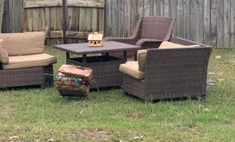 Take it easy at this unique tucked away barn style cottage and tranquil getaway sitting on 4 acres. This beauty offers RV parking , 2 outdoor fire pits w/ patio furniture , outdoor bar & and a marshmallows & wood burning activities awaiting your arrival. Additionally the guest home has indoor fireplaces for heating & A/C units for air. This home is only 30 minutes from downtown & 15 minutes from cajun encounters swamp tour( ask for Emmitt)About pets:No pets allowed.About checkOut:Check out before 11:00 AM.About children:Children allowed: ages 0-17.About checkIn:Check in after 4:00 PM.About smoking:Smoking is not permitted.About minBookingAge:Minimum age to rent: 21.About events:No events allowed.