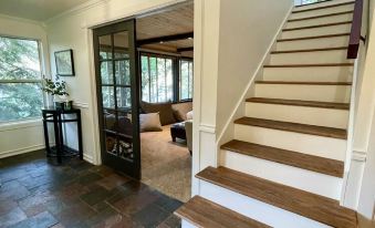 This was a great find! The property was very clean, check in easy and the property owners very responsive. It is a 5 minute walk to the beach (no pets allowed) and has a great view of the lake. We enjoyed the special touches such as the welcome basket, smores kit, and treats for the dogs.