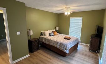 The property is a bit deep in the woods but just a couple minutes drive away from some places to eat and the lake. It has wifi and a good amount of space for multiple people. I wasn’t able to find the hot tub mentioned in the listing, but I didn’t ask the owners since it got late into the night before we thought to look for it. The owners are good at communicating with customers if you do have any issues though, and they left us good recommendations on local spots.