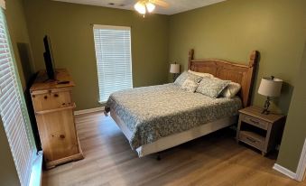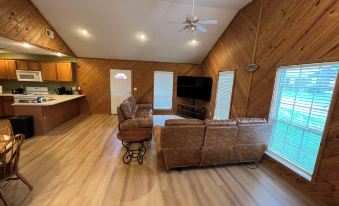 Cabin located 2 minutes from Hill Creek Marina and boat ramp, scenic drive in and out of neighborhood. 5 minutes to closest grocery store, and 7 minutes to Greers Ferry, while also being in a quiet, nice neighborhood. 1,100 sq. ft. home for a spacious get away. Parking for boat and trailer provided, queen size beds, reclining couches, WiFi, 75in tv, spacious living room. About pets:Pets allowed: limit 2 total.No pitbulls or aggressive dogs..About checkOut:Check out before 11:00 AM.About children:Children allowed: ages 0-17.About checkIn:Flexible check-in available (contact host in advance of arrival).About smoking:Smoking is not permitted.About minBookingAge:Minimum age to rent: 21.About events:Events allowed: family gatherings and birthday parties.Maximum event attendees: 10.