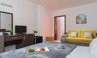 The Tia Maria Hotel is situated in the southern part of the Sunny Beach Resort, 250 metres from the beach and a 5-minute walk from the centre. It offers spacious and comfortable rooms at very competitive rates, ideally suited for families with children or young couples. The modern property is within easy reach of both the beach and resort centre. Venture out and have fun at the many discos, bars and pubs in the vicinity. For your convenience, a big supermarket is also nearby. The hotel also houses an a la carte restaurant serving international cuisine. If you do not want to go to the beach one day, the hotel's swimming pool is an inviting place to relax under the warm sun and plunge into the cool water for refreshment. Beach chairs and umbrellas are included in the room price.