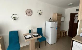 Accommodation is fitted with air conditioning, a fully equipped kitchenette with a dining area, a flat-screen TV and a private bathroom with shower and a hairdryer. A fridge, a microwave and stovetop are also provided, as well as a kettle.