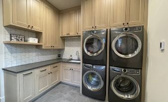 This spacious, well-appointed home comfortably accommodates up to 16 guests. It features two elegant King Master Suites with private spa-like bathrooms, plus two additional bedrooms with double Queen beds and ensuite baths. The upper-level bonus room is ideal for kids, with four built-in twin beds, ambient reading lights, and a private bathroom. Each room is outfitted with memory foam mattresses, plush duvets, high-thread-count linens, soft and firm down pillows, and cozy robes. All bathrooms are stocked with clean, non-toxic shampoo, conditioner, and body wash to support a healthy and eco-conscious stay.