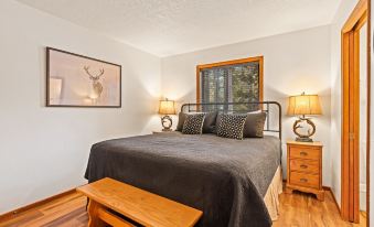 Step into a classic Sunriver Cabin, "Sunriver Nostalgia", just steps from Sunriver Village and SHARC. This family-friendly cabin sleeps up to 8 people in a 3 bedroom + loft, 2 full bath home. A private hot tub and expansive deck provide an ideal spot for gathering with your closest friends and family. You'll love the recent updates that offer modern conveniences to the home while maintaining the original charm of the cabin.