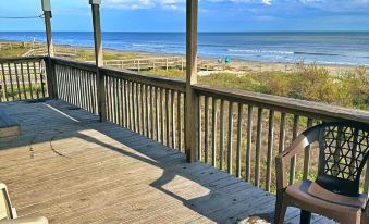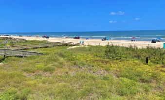 The property has perfect access to the beach! We had a great visit for my son's 13th birthday celebration with his friends. They stayed in the bunkroom upstairs which was perfect! The grounds ("yard") were a bit rough, but hurricane Beryl had a lot to do with that I'm sure. We didn't use the yard and were there for the beach so it was fine. The house is well kept and clean, but the front door could use some work. The extra fridge is a bonus! The place was just what we needed!