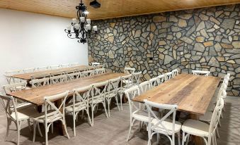 This Cabin features a private cellar with beautiful farm tables and luxury seating for up to 36 guests with projector for meetings and gatherings. This is available upon request for a fee and allows for catering options.