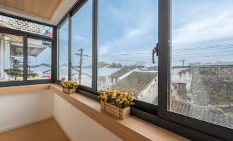 房東服務很好,提前➕v 告知很多訊息。民宿離山塘街超級近走路兩分鐘直接進山塘街主街。三個房間一個大客廳,有餐桌還有麻將桌,是個帶着老老小小一起出門的。廚房用具一應俱全,燒水熱菜都很方便。智能密碼門鎖,非常安全,每次都發送一個動態密碼還是非常好的。主卧陽台望出去看到一片藍天和青瓦,一張搖椅慢慢悠悠。